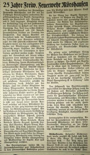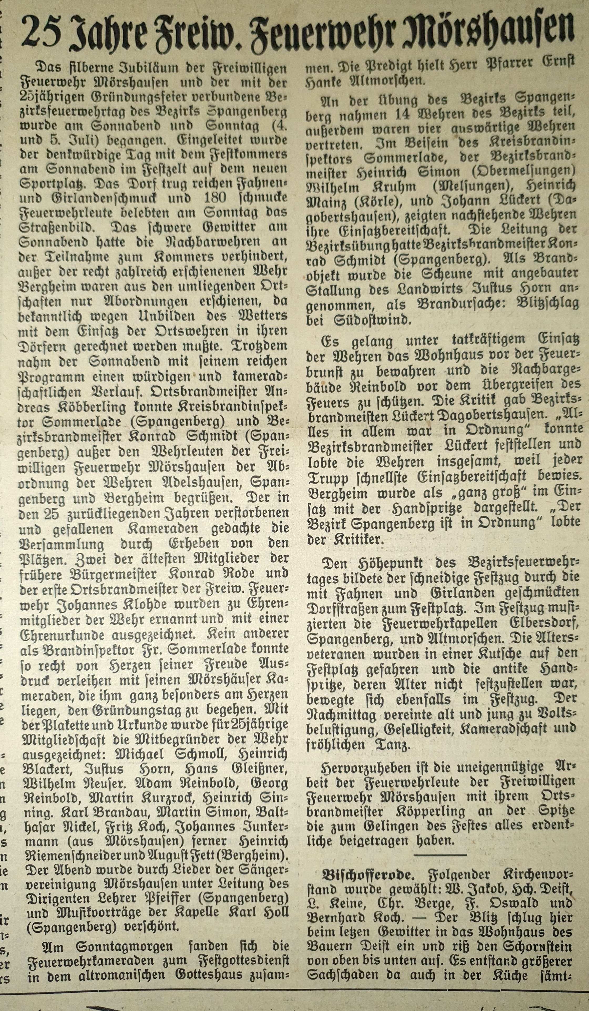 1953 konnte die Freiwillige Feuerwehr ihr 25jähriges Bestehen feiern. Die Spangenberger Zeitung berichtete entsprechend.