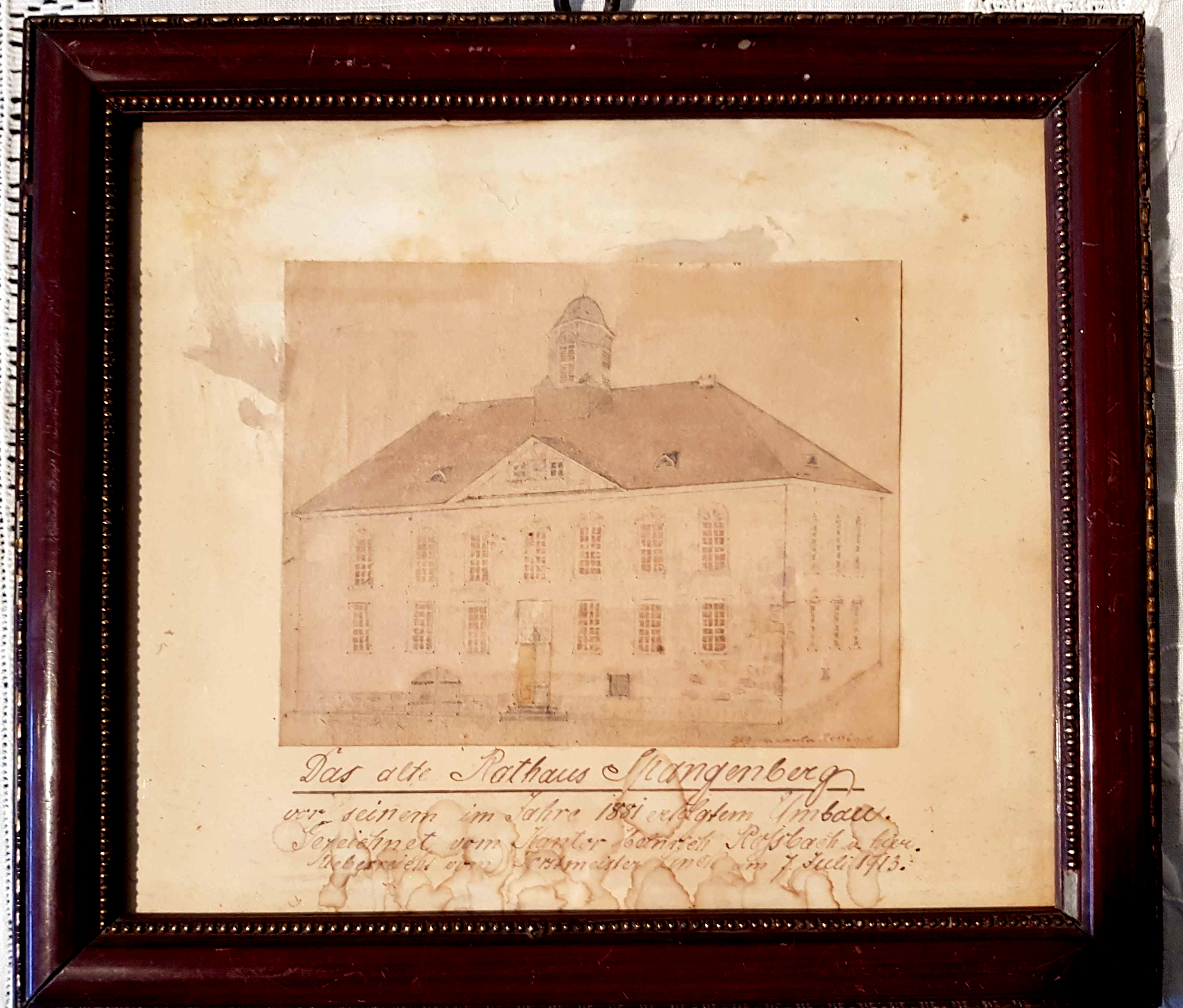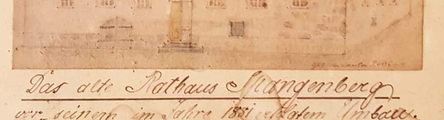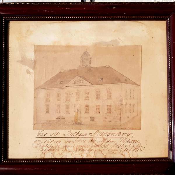 Hier eine Zeichnung des alten Rathauses von Spangenberg. Erstellt vor dessen Umbau in 1881. Das Bild trägt folgende Unterschrift: