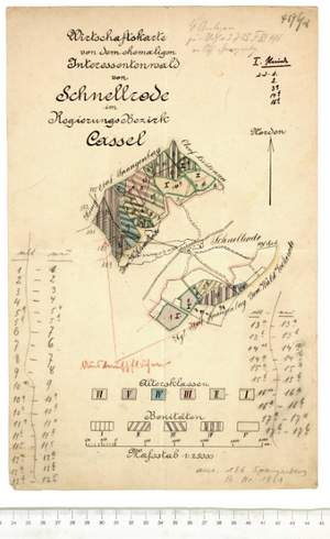 Im Staatsarchiv Marburg befindet sich eine Wirtschaftskarte des ehemaligen Interessentenwaldes von Schnellrode aus den Jahr 1906.