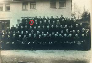 "Dieses Bild zeigt eine größere Gruppe älterer Herrschaften. Da links und rechts Pfarrer abgebildet sind, nehme ich an, dass es sich um ein Gruppembild von eine Ehrenkonfirmation handelt die in den 1950iger Jahren im Lande-/Gudetal stattgefunden hat. Das Bild habe ich aus Landefeld erhalten. Vielleicht kann jemand hierzu genauere Angaben machen.