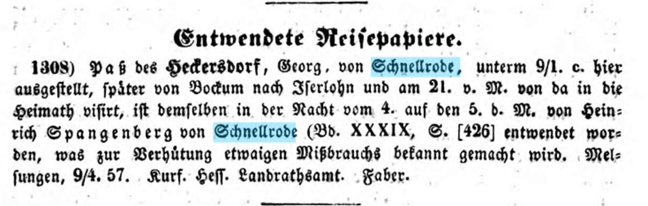 Heinrich Spangenberg aus Schnellrode hat Pass entwendet