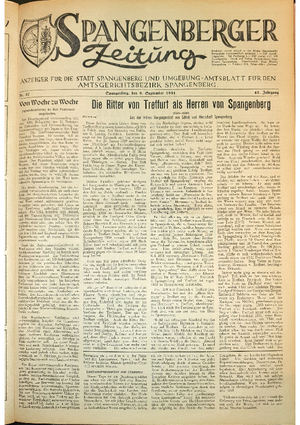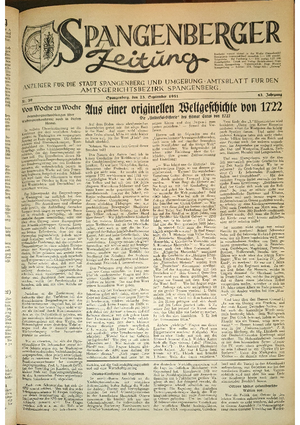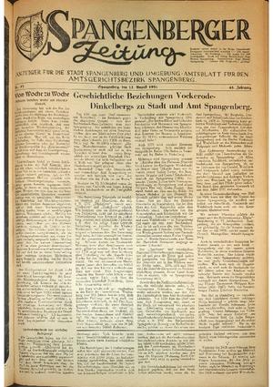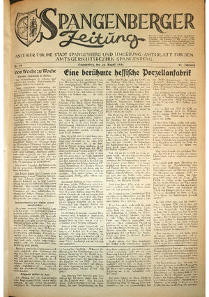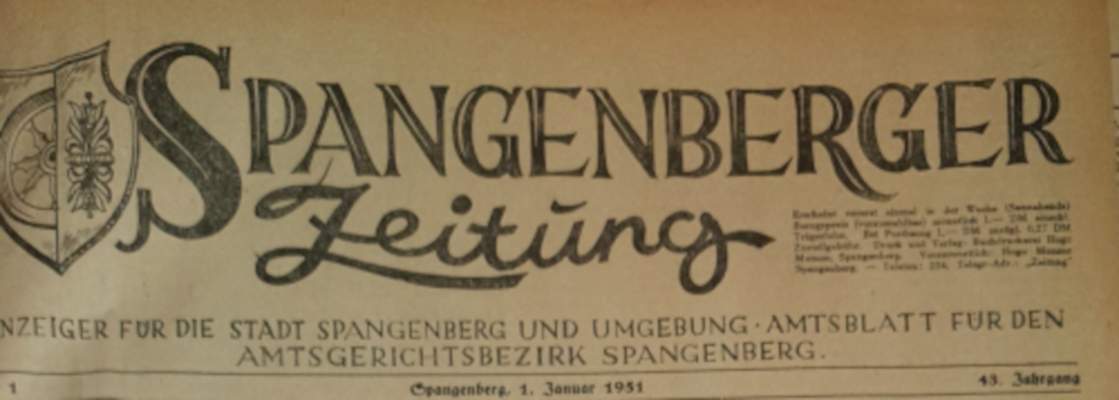 Hier ist der komplette Jahrgang der Spangenberger Zeitung aus dem Jahr 1951. Viel Spaß beim “stöbern”. Viele interessante Artikel und Informationen könnt ihr hier finden.