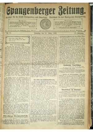 Wer hat evtl. die Ausgaben der Spangenberger Zeitung der Jahrgänge kompletten Jahrgänge 1921 und 1931 - oder auch einzelne Exemplare? Bitte melden, wir suchen dringend diese Jahrgänge zur Komplettierung des Archives.