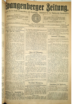 Wer hat evtl. die Ausgaben der Spangenberger Zeitung der Jahrgänge kompletten Jahrgänge 1917, 1921, und 1931 - oder auch einzelne Exemplare? Bitte melden, wir suchen dringend diese Jahrgänge zur Komplettierung des Archives.
