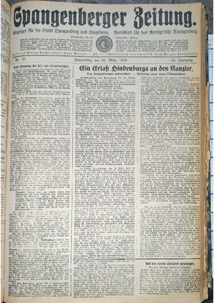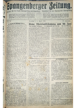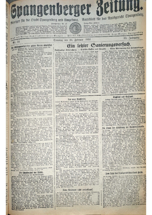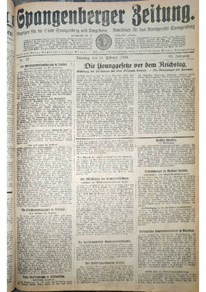 Wer hat evtl. die Ausgaben der Spangenberger Zeitung Jahrgang 1931 - auch einzelne Exemplare? Bitte Datei öffnen und Hinweis lesen.