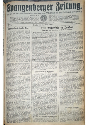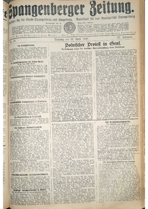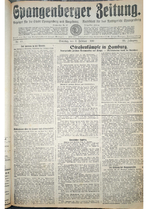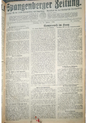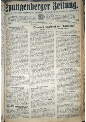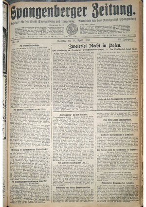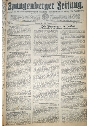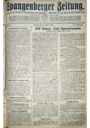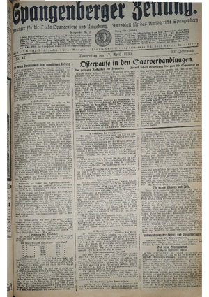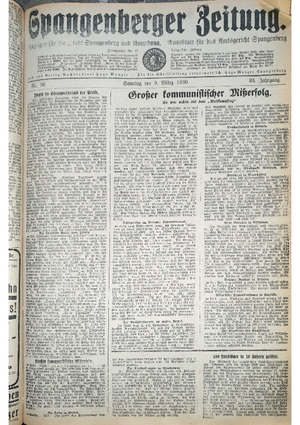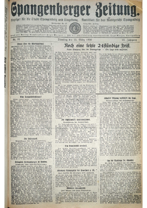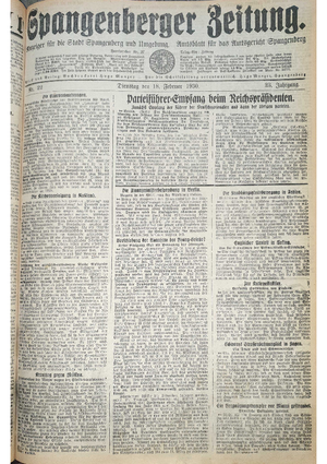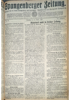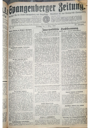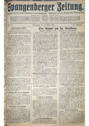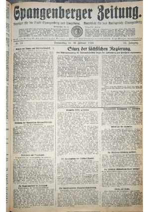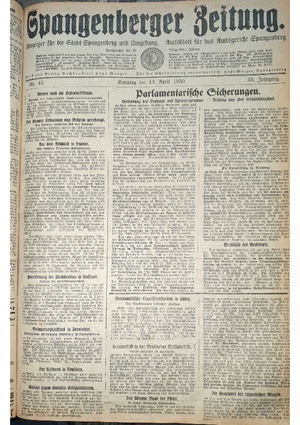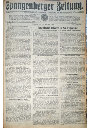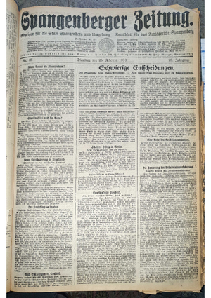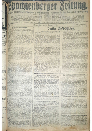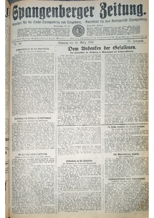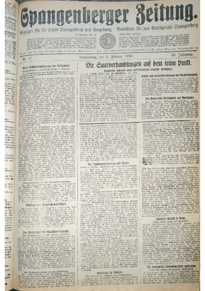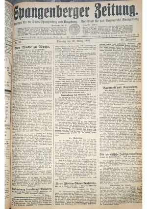 Wer hat evtl. die Ausgaben der Spangenberger Zeitung der Jahrgänge kompletten Jahrgänge 1917, 1921, 1931 und 1935 - oder auch einzelne Exemplare? Bitte melden, wir suchen dringend diese Jahrgänge zur Komplettierung des Archives.