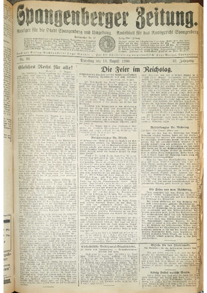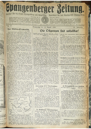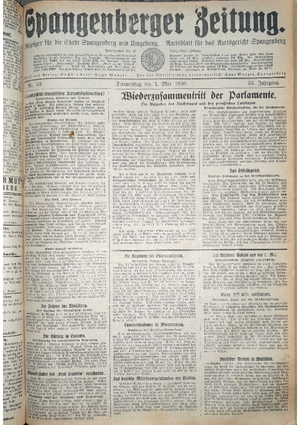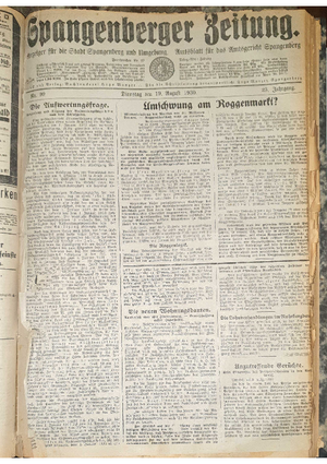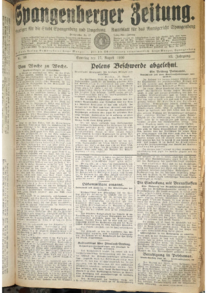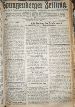 Wer hat evtl. die Ausgaben der Spangenberger Zeitung der Jahrgänge kompletten Jahrgänge 1917, 1921, 1931 und 1935 - oder auch einzelne Exemplare? Bitte melden, wir suchen dringend diese Jahrgänge zur Komplettierung des Archives.