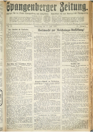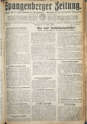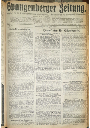 Wer hat evtl. die Ausgaben der Spangenberger Zeitung Jahrgang 1931 - auch einzelne Exemplare? Bitte Datei öffnen und Hinweis lesen.