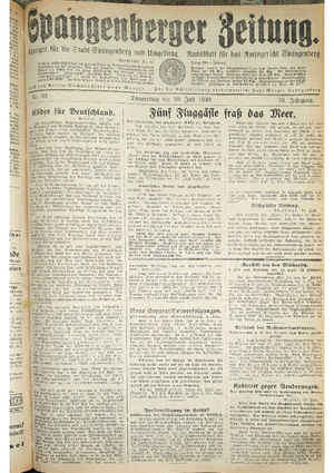 Hier ist der Jahrgang der Spangenberger Zeitungen für das Jahr 1930, und zwar Teil II mit den Nrn. 51 bis 100.