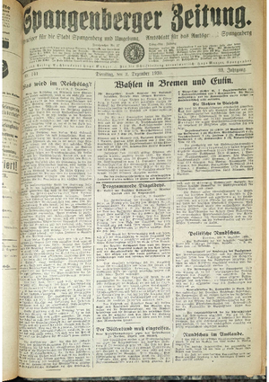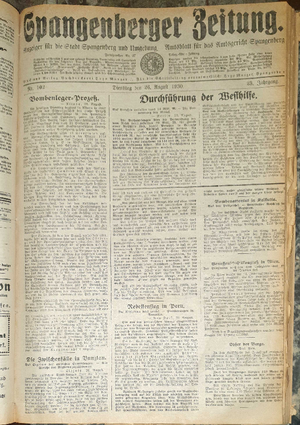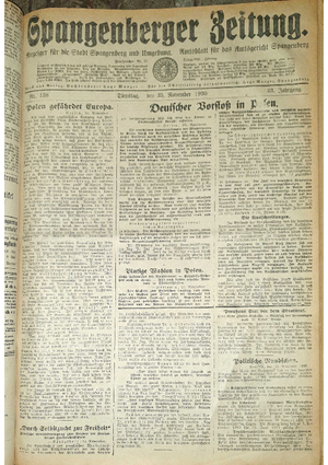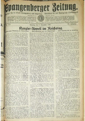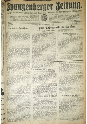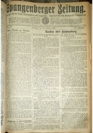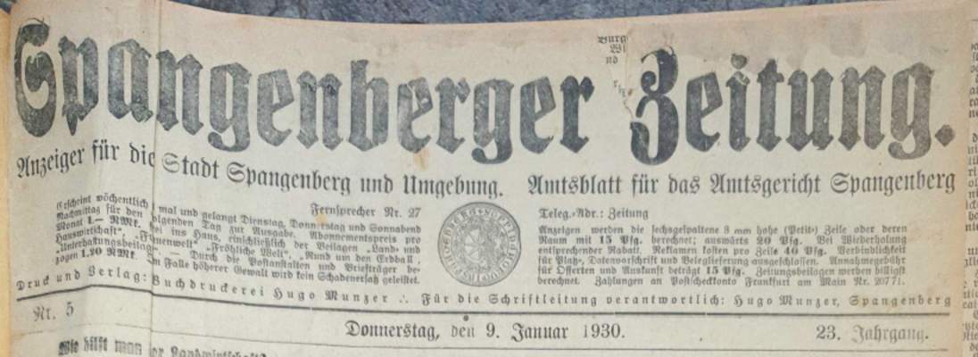 Wer hat evtl. die Ausgaben der Spangenberger Zeitung Jahrgang 1931 - auch einzelne Exemplare? Bitte Datei öffnen und Hinweis lesen.
