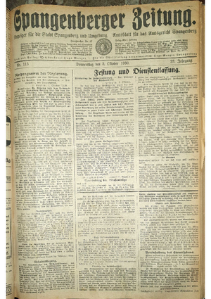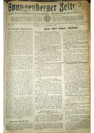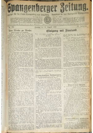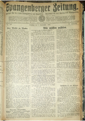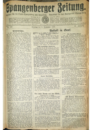 Wer hat evtl. die Ausgaben der Spangenberger Zeitung der Jahrgänge kompletten Jahrgänge 1917, 1921, 1931 und 1935 - oder auch einzelne Exemplare? Bitte melden, wir suchen dringend diese Jahrgänge zur Komplettierung des Archives.