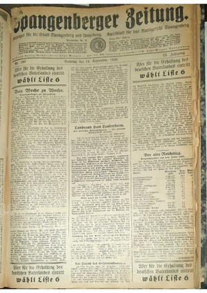 Hier ist der Jahrgang der Spangenberger Zeitungen für das Jahr 1930, und zwar Teil III mit den Nrn. 101 bis 149.