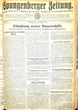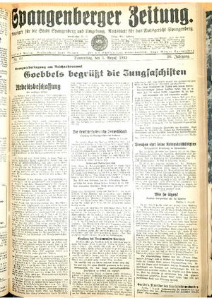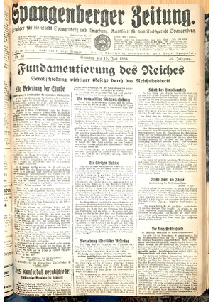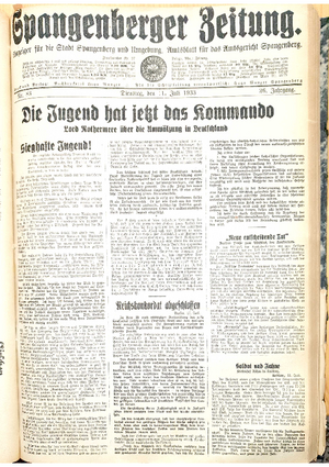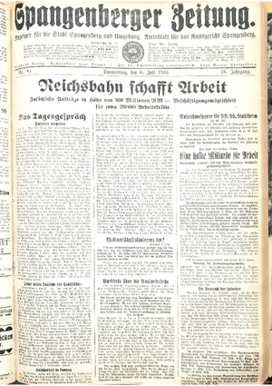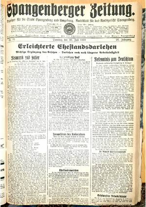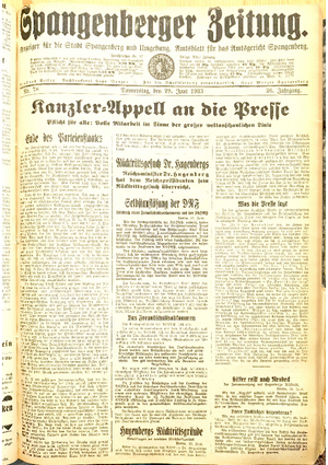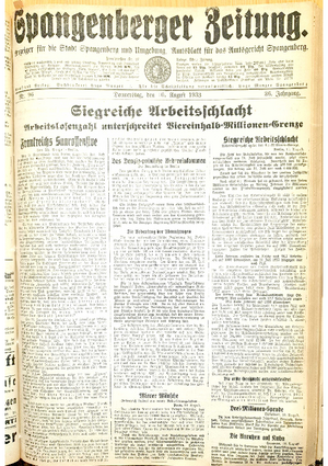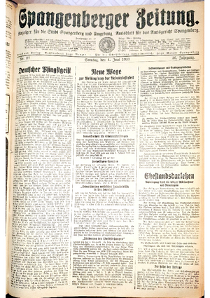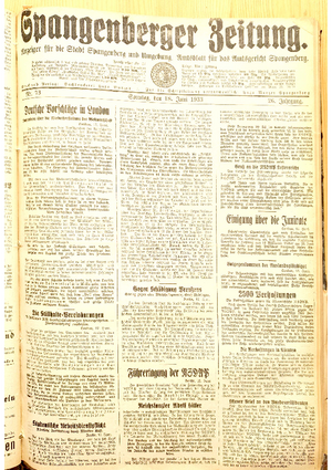 Hier ist der Jahrgang der Spangenberger Zeitungen für das Jahr 1933, und zwar Teil II mit den Nrn. 51 bis 100.