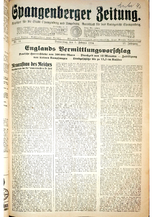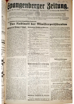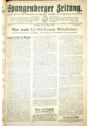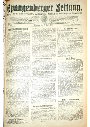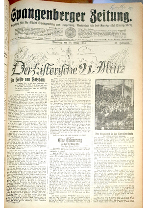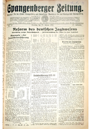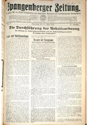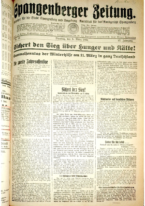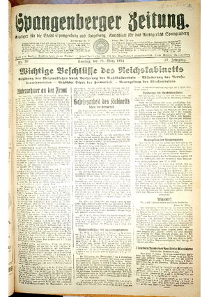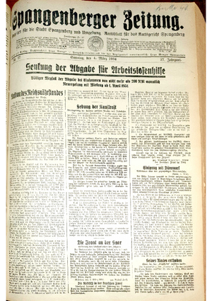 Wer hat evtl. die Ausgaben der Spangenberger Zeitung der kompletten Jahrgänge 1917, 1921, 1931 und 1935 - oder auch einzelne Exemplare? Bitte melden, wir suchen dringend diese Jahrgänge zur Komplettierung des Archives. Bitte Dateirn öffnen und Hinweis lesen.