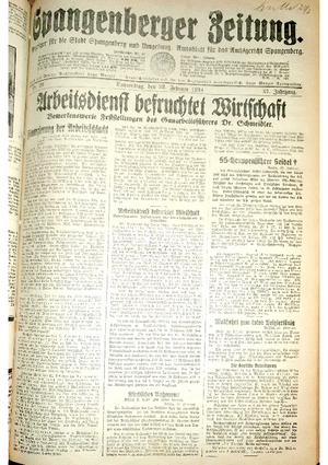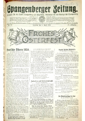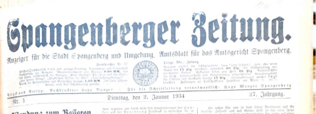 Hier ist der Jahrgang der Spangenberger Zeitungen für das Jahr 1934, und zwar Teil I mit den Nrn. 1 bis 50.