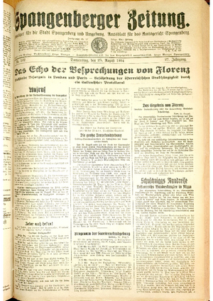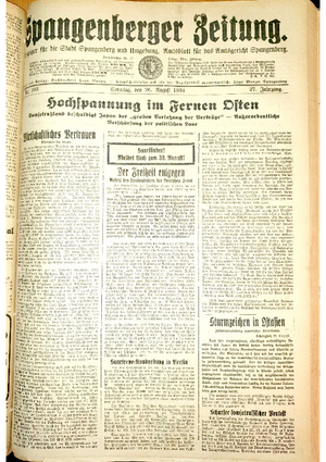 Wer hat evtl. die Ausgaben der Spangenberger Zeitung der kompletten Jahrgänge 1917, 1921, 1931 und 1935 - oder auch einzelne Exemplare? Bitte melden, wir suchen dringend diese Jahrgänge zur Komplettierung des Archives. Bitte Dateirn öffnen und Hinweis lesen.