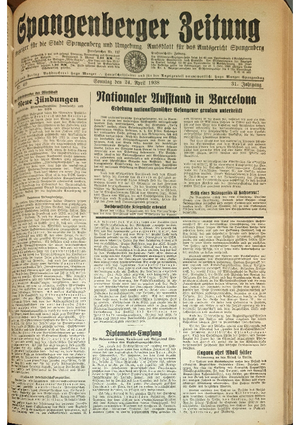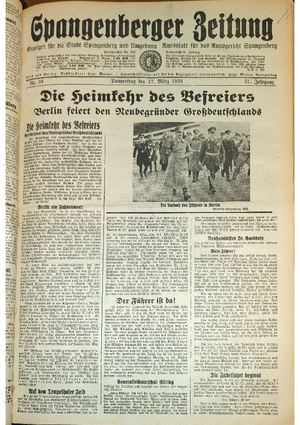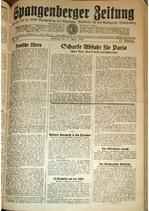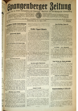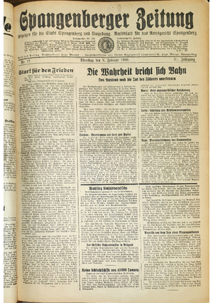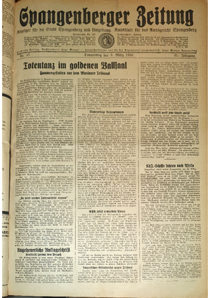 Wer hat evtl. die Ausgaben der Spangenberger Zeitung der kompletten Jahrgänge 1917, 1921, 1931 und 1935 - oder auch einzelne Exemplare? Bitte melden, wir suchen dringend diese Jahrgänge zur Komplettierung des Archives. Bitte Dateirn öffnen und Hinweis lesen.
