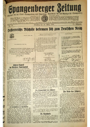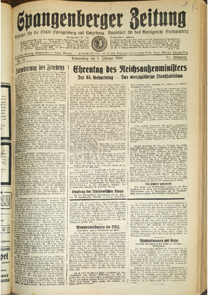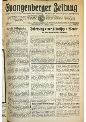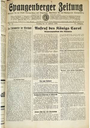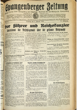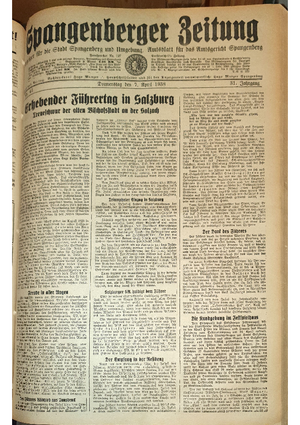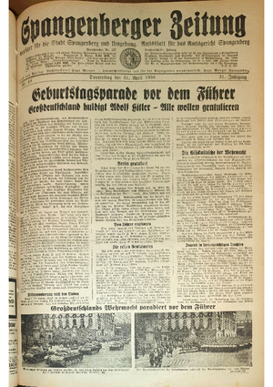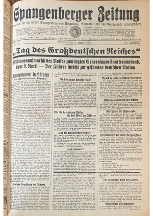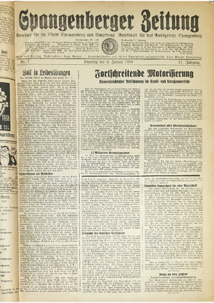 Hier ist der Jahrgang der Spangenberger Zeitungen für das Jahr 1938, und zwar Teil I mit den Nrn. 1 bis 50.