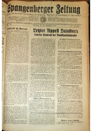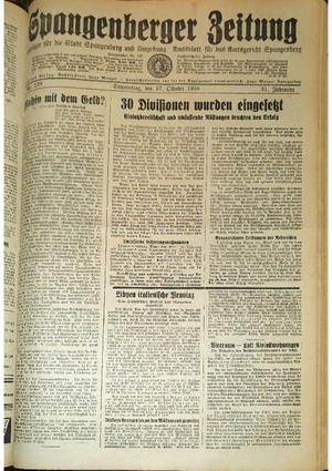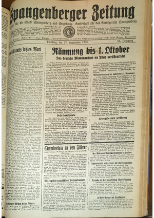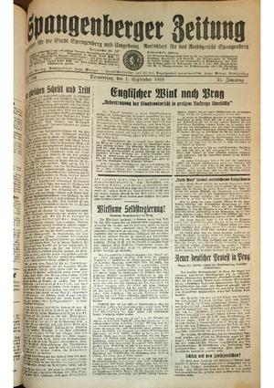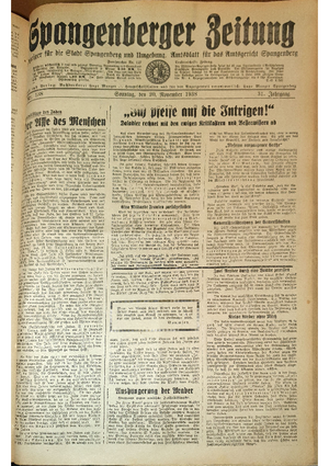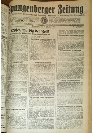 Wer hat evtl. die Ausgaben der Spangenberger Zeitung der kompletten Jahrgänge 1917, 1921, 1931 und 1935 - oder auch einzelne Exemplare? Bitte melden, wir suchen dringend diese Jahrgänge zur Komplettierung des Archives. Bitte Dateirn öffnen und Hinweis lesen.