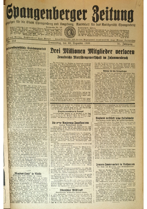 Hier ist der Jahrgang der Spangenberger Zeitungen für das Jahr 1938, und zwar Teil III mit den Nrn. 101 bis 155.