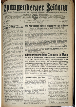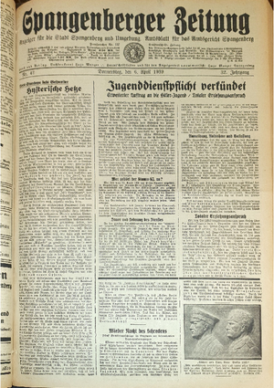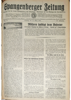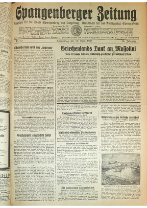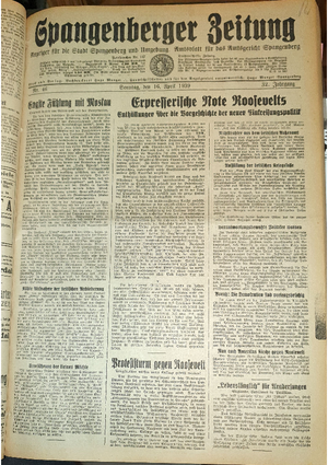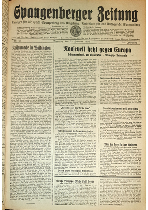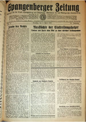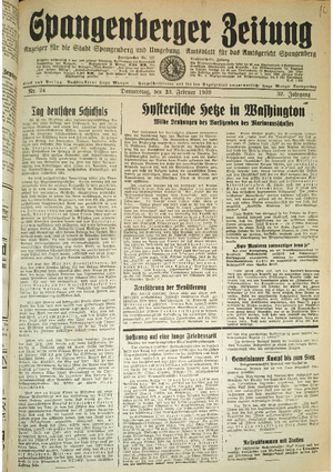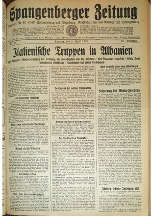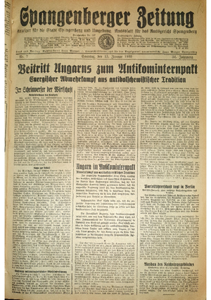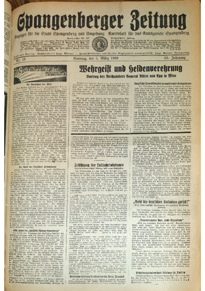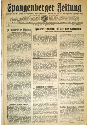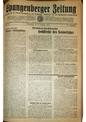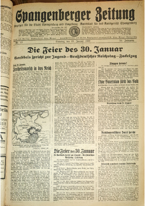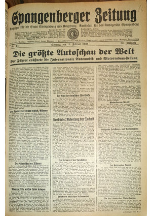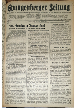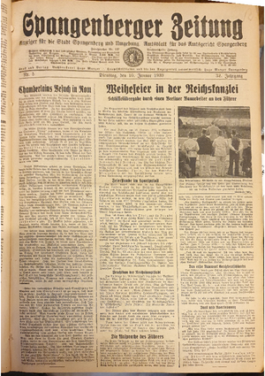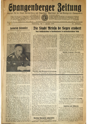 Hier ist der Jahrgang der Spangenberger Zeitungen für das Jahr 1939, und zwar Teil I mit den Nrn. 1 bis 50.