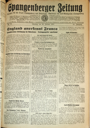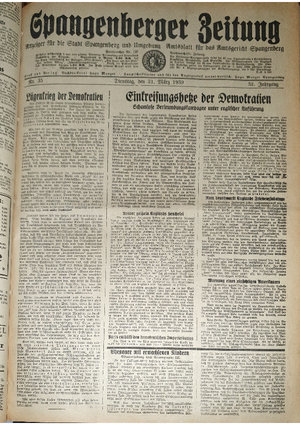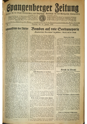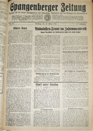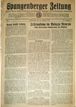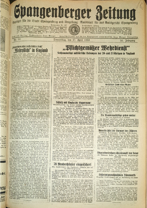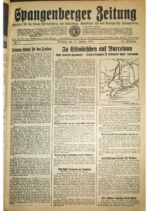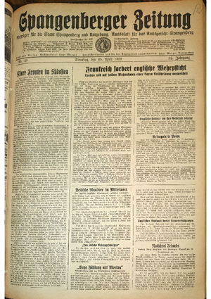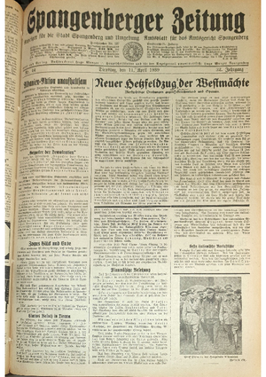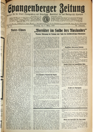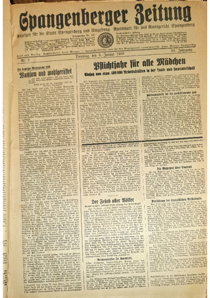 Wer hat evtl. die Ausgaben der Spangenberger Zeitung der kompletten Jahrgänge 1917, 1921, 1931 und 1935 - oder auch einzelne Exemplare? Bitte melden, wir suchen dringend diese Jahrgänge zur Komplettierung des Archives. Bitte Dateien öffnen und Hinweis lesen.