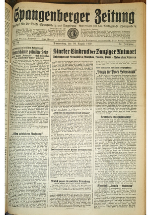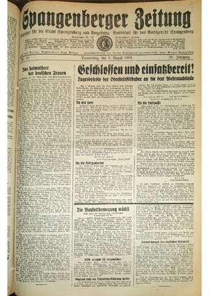 Hier ist der Jahrgang der Spangenberger Zeitungen für das Jahr 1939, und zwar Teil II mit den Nrn. 51 bis 100.