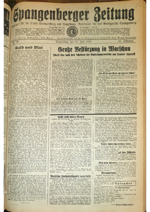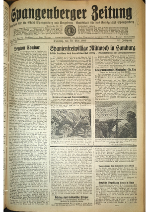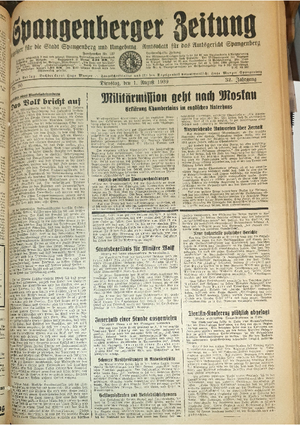 Wer hat evtl. die Ausgaben der Spangenberger Zeitung der kompletten Jahrgänge 1917, 1921, 1931 und 1935 - oder auch einzelne Exemplare? Bitte melden, wir suchen dringend diese Jahrgänge zur Komplettierung des Archives. Bitte Dateien öffnen und Hinweis lesen.